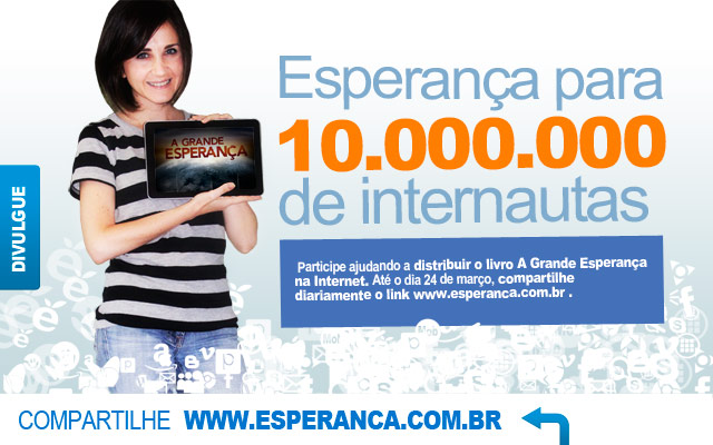 Só no Estado de São Paulo mais de 13 milhões de livros foram comprados para serem entregues. E no dia 24 de março serão distribuídos mais de 3 milhões de livros A Grande Esperança só na cidade de São Paulo. “Temos que nos unir, pois esperamos a volta de Jesus e queremos que todos tenham esta esperança. Deus precisa de cada um de nós para divulgar esta mensagem da restauração e salvação.” Comenta Pastor Domingos de Sousa, líder da Igreja Adventista no Estado de São Paulo.